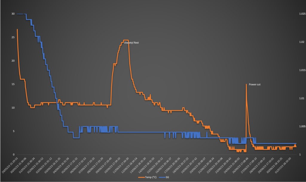 Slowly lower the temperature from the diacetyl rest and hold it there for a few more weeks. Be sure to lower the temperature slowly! By lowering the temp 1º to 2º per day, the yeast are slowly eased into the lager. This keeps them healthy for the next phase of fermentation. If you lower the temperature too quickly, they will be shocked into releasing a large amount of esters into the beer, potentially altering the flavor profile. The lagering process will assist in flocculation, allowing the solids to fall out of suspension and settle on the bottom of your vessel, producing an exceptionally clean final product.