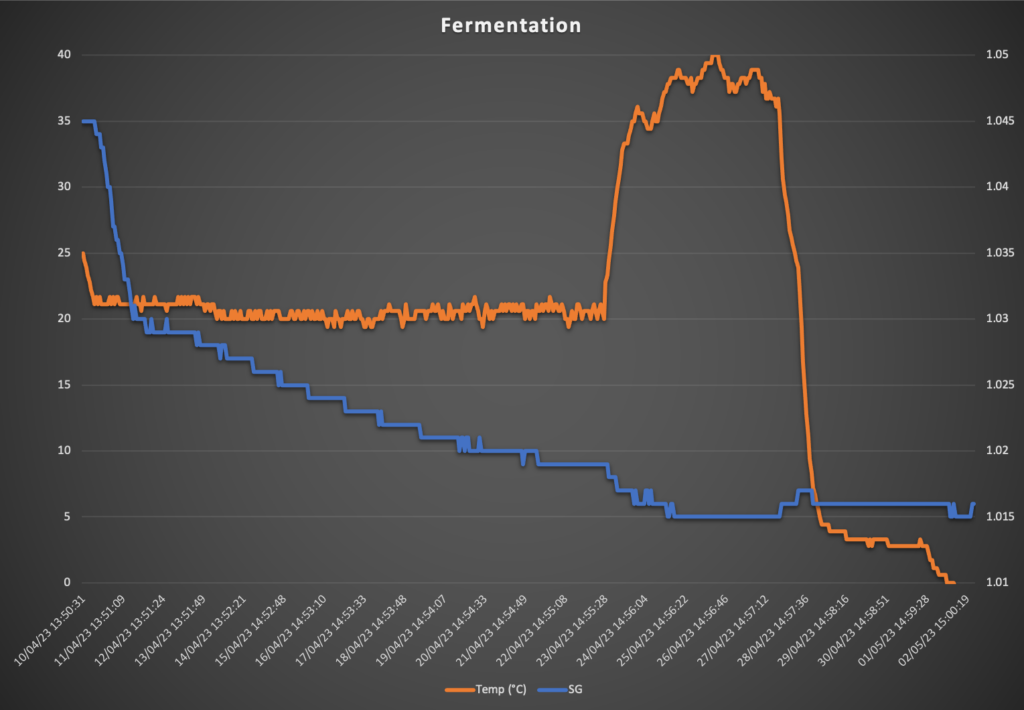 - Left for 2 days before adding CO2 pressure to let the beer relax after its traumatic siphoning.